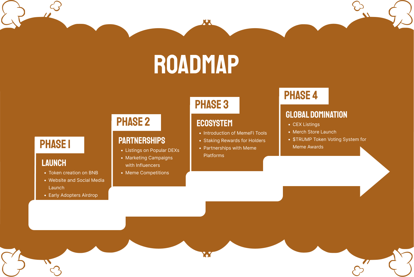 $TRUMP Token isn’t just another cryptocurrency—it’s a movement! Inspired by the boldness and energy of the 45th President of the United States, we aim to inject humor, fun, and community into the crypto space. Built on Binance Smart Chain for speed and affordability, $TRUMP Token is your ticket to the meme economy’s next big wave.